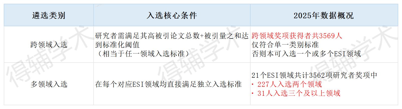 跨领域研究者需满足其高被引论文总数与被引量之和达到标准化阈值(相当于任一领域入选标准);