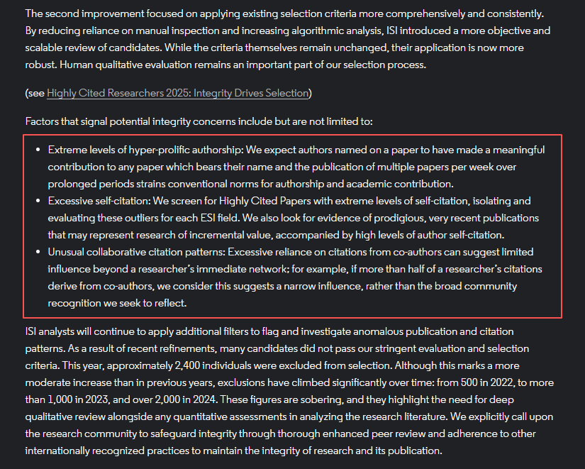 今年,剔除了因研究诚信问题被排除在2024年榜单之外的作者所撰写的“高被引论文”。