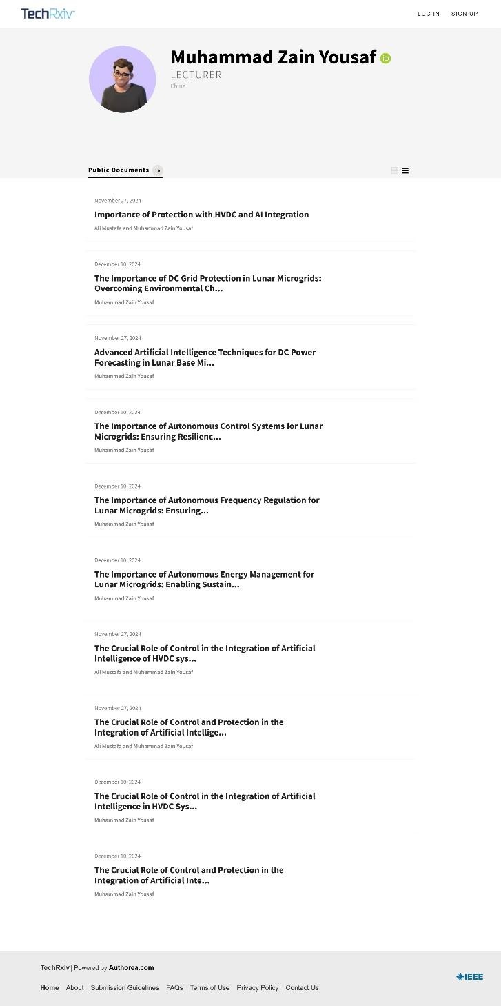 调查发现,Muhammad Zain Yousaf在两天内向IEEE旗下预印本平台 TechRxiv 上传了 10 篇短文档,这些文档不仅内容质量低下、缺乏连贯性,其参考文献列表更是充满了自我引用: