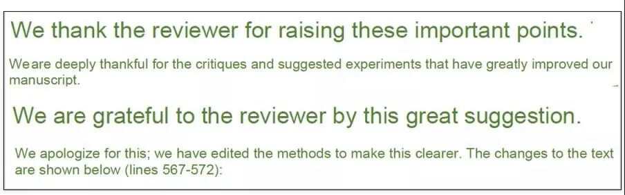 回复审稿意见时,尽可能内容表达清晰。不要出现:审稿人为找到修改的内容,不得不再次阅读手稿的情况。