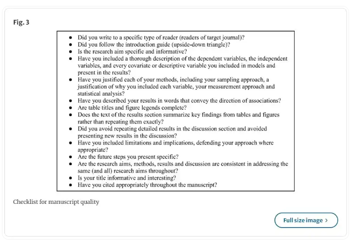 完成论文草稿后,建议按照下图清单来指导修订和编辑。当作者感觉一切就绪时,可以邀请一两个值得信赖的同事阅读文章并提供非正式的意见。