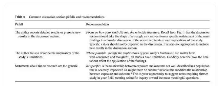 讨论部分的常见错误和建议见下图。常见错误包括:讨论部分重复详细结果或呈现新的结果;未能描述研究局限性;关于未来研究的建议过于笼统。