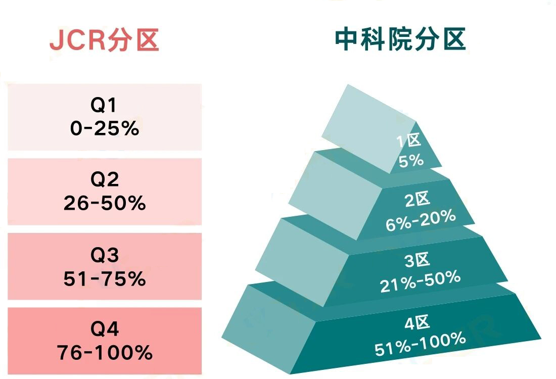 众所周知,SCI期刊按影响因子(IF)由高到低划分为JCR分区和中科院分区,标准会有所不同。 两大分区体系: