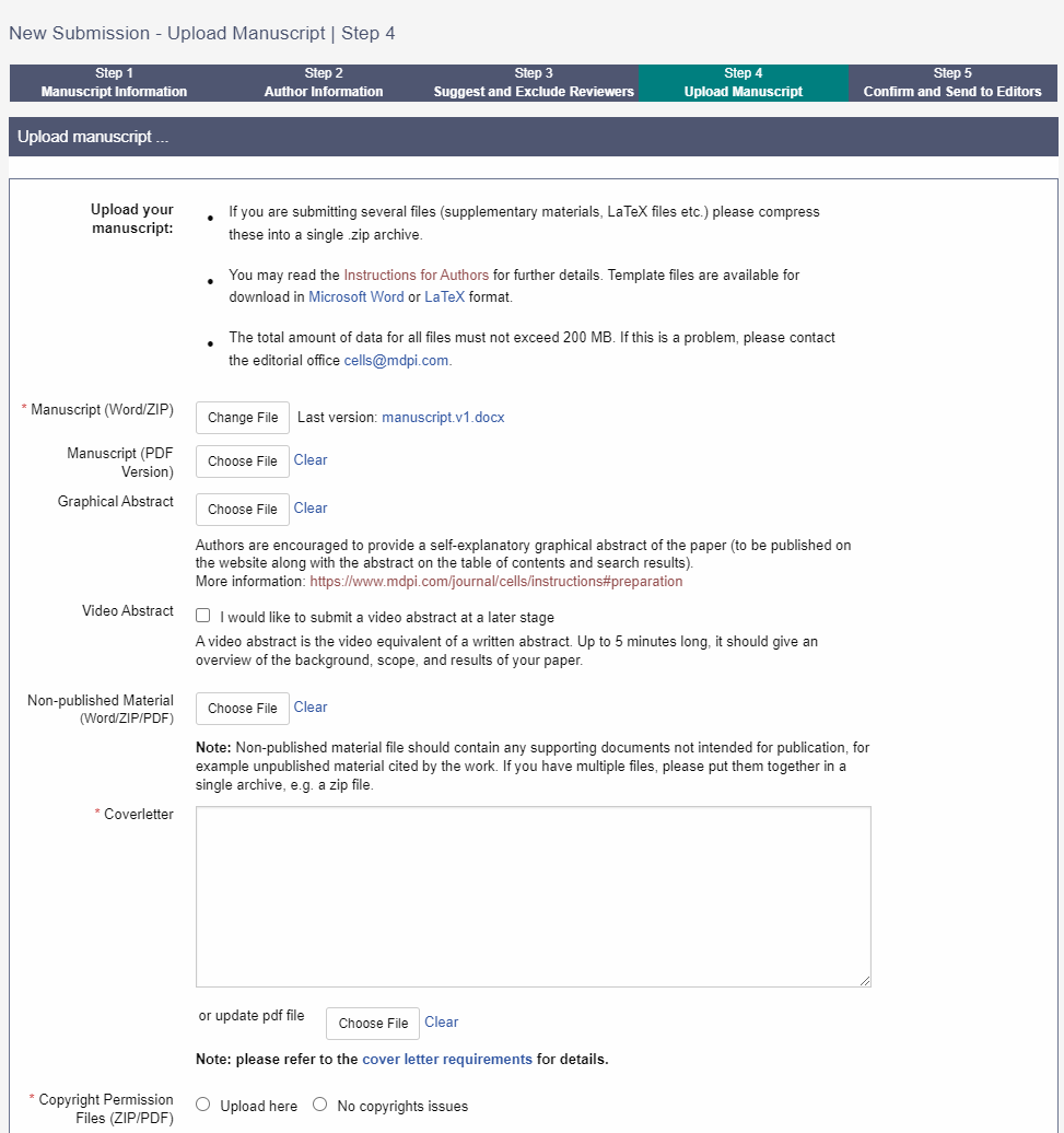 在此步骤中,作者可重新上传稿件,并上传除稿件外的其他文件,如附信、补充材料、图表以及图片摘要。