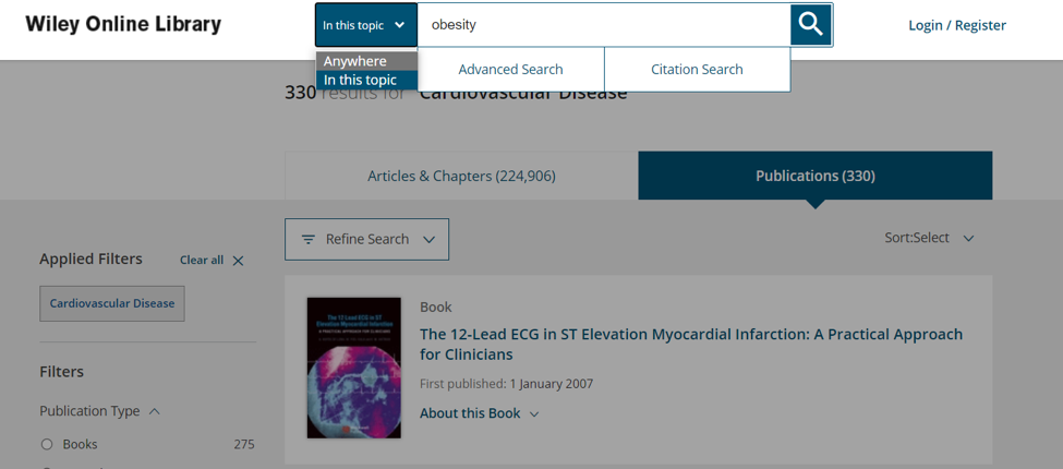 进入目标细分学科后,在简单检索框中输入关键词,即可更精准地找到相关文章。例如,若希望了解心血管疾病中与肥胖相关的研究,可先进入“Cardiovascular Disease”学科,再在检索框中输入“obesity”。此举能在限定范围内查找目标文献,同时过滤掉社会科学或其他医学领域中无关的“obesity”研究结果。