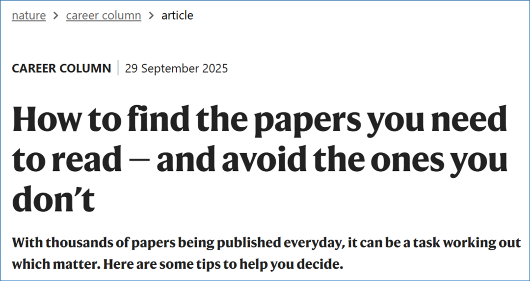 当前尚无单一方法能彻底解决文献追踪难题,这或许正是大量阅读的意义所在。随着科学出版物的增长,筛选能力已从被动习惯变为必备技能。最有效的往往是组合策略:以期刊提醒筑牢基础,用定制检索保持敏锐,借学术与社交网络维持连接,并利用AI工具提升效率。关键在于建立适合自身研究目标、时间分配与知识好奇心的系统,并随研究进展持续优化。