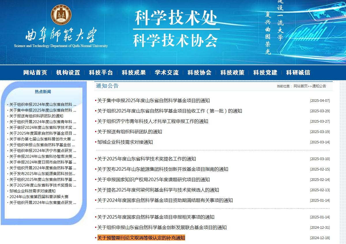 其实早在2024年12月曲阜师范大学也发布了《关于预警期刊论文取消等级认定的补充通知》